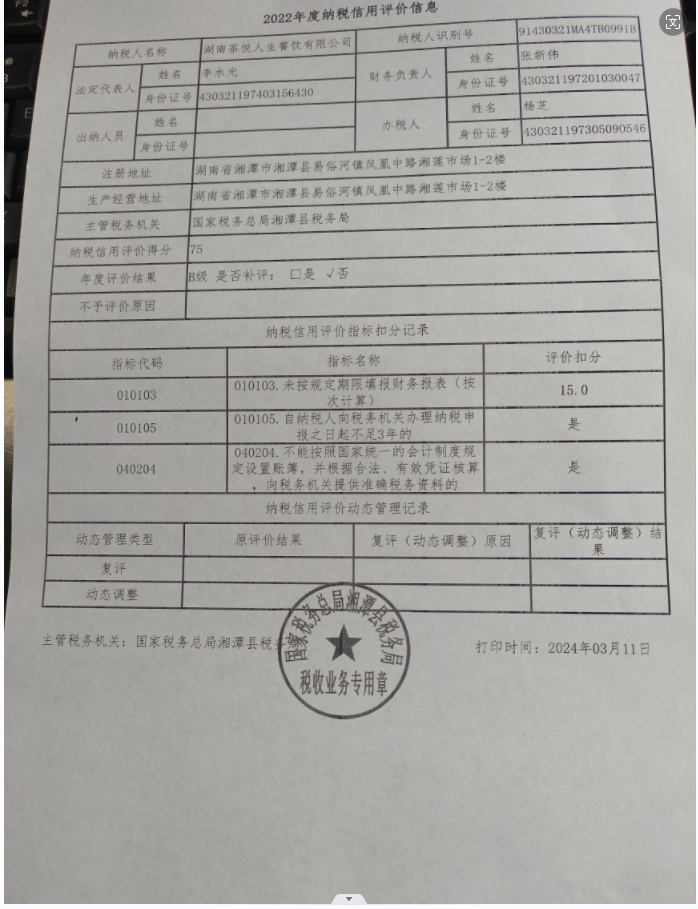 企業(yè)納稅信用等級(jí)報(bào)告: