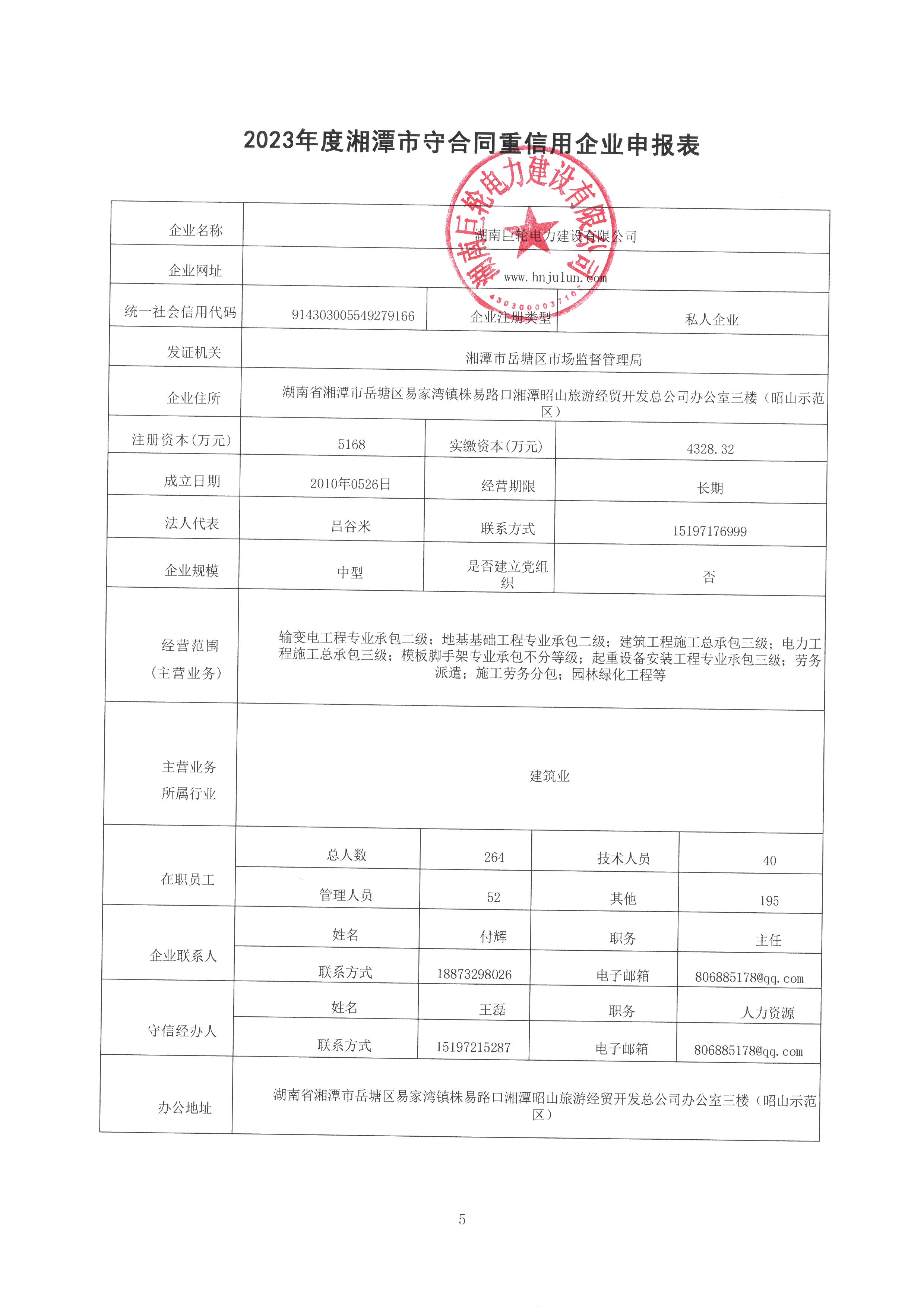 本企業(yè)根據《湘潭市守合同重信用企業(yè)申報規(guī)定》等編制 2023 年度企業(yè)信用報告書,并保證本報告書內容真實、準確、完整。