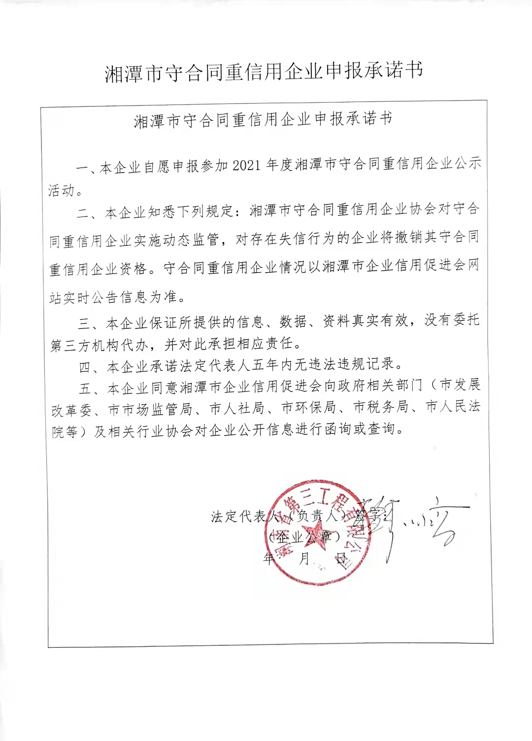 本企業(yè)根據(jù)《湘潭市守合同重信用企業(yè)申報規(guī)定》等編制 2021 年度企業(yè)信用報告書,并保證本報告書內(nèi)容真實、準確、完整。