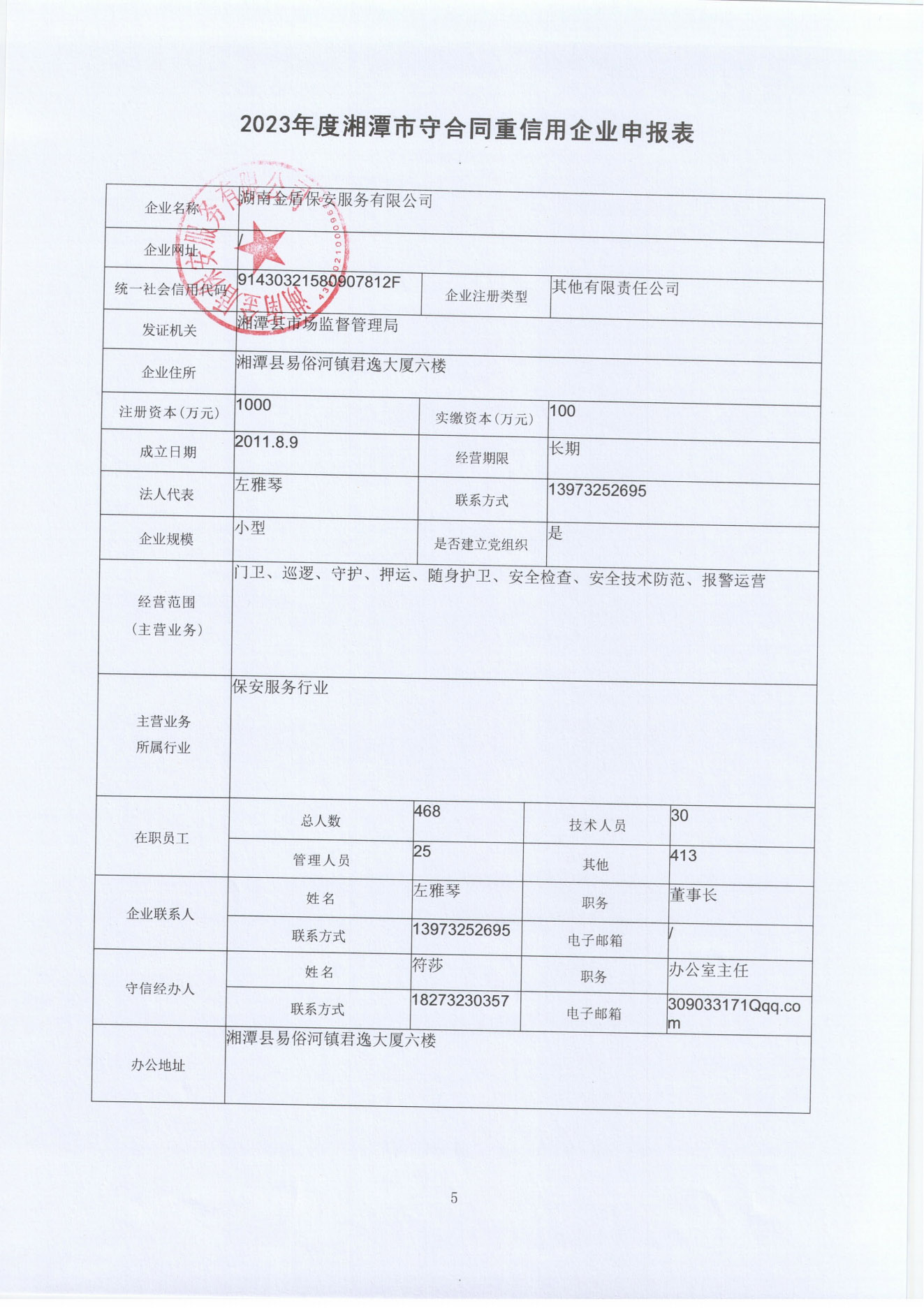 本企業(yè)根據(jù)《湘潭市守合同重信用企業(yè)申報規(guī)定》等編制 2023 年度企業(yè)信用報告書,并保證本報告書內(nèi)容真實(shí)、準(zhǔn)確、完整。